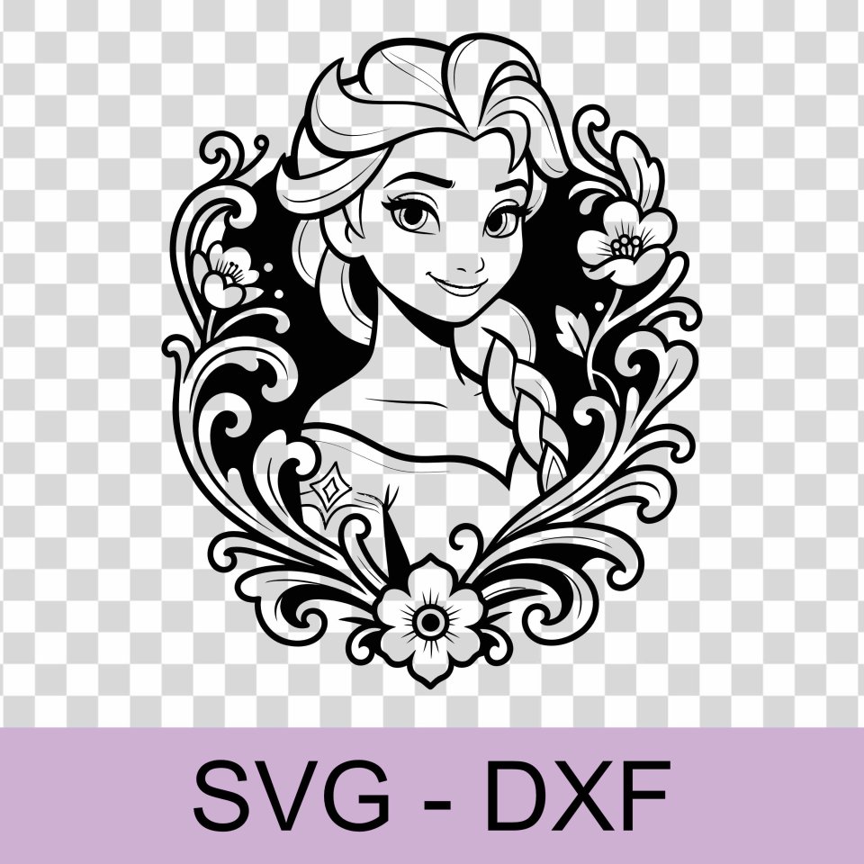 Elsa (Frozen) temalı bu vektörel tasarım, lazer kesim, CNC, plotter ve dijital baskı uygulamaları için özel olarak hazırlanmıştır. SVG ve DXF formatları sayesinde net çizgiler, yüksek hassasiyet ve sınırsız ölçeklenebilirlik sunar.
