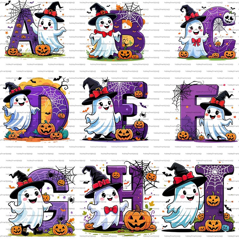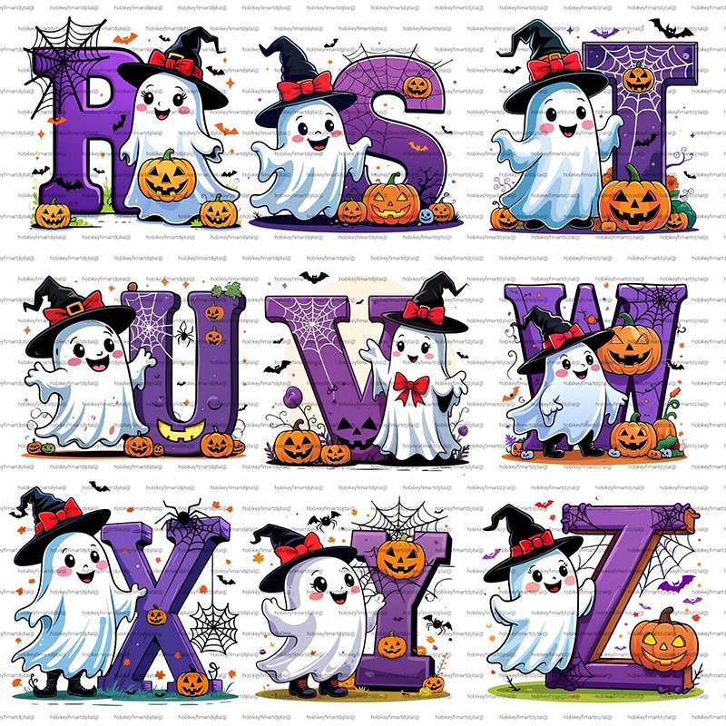 Tam Set: Korkutucu ve Sevimli Halloween Alfabesi! Tüm alfabeyi içeren bu 26 parçalık özel set, projelerinize profesyonel bir dokunuş katar. Yüksek çözünürlüklü (300 DPI) yapısı sayesinde tekstil baskılarından dijital tasarımlara kadar her alanda kusursuz sonuç verir.